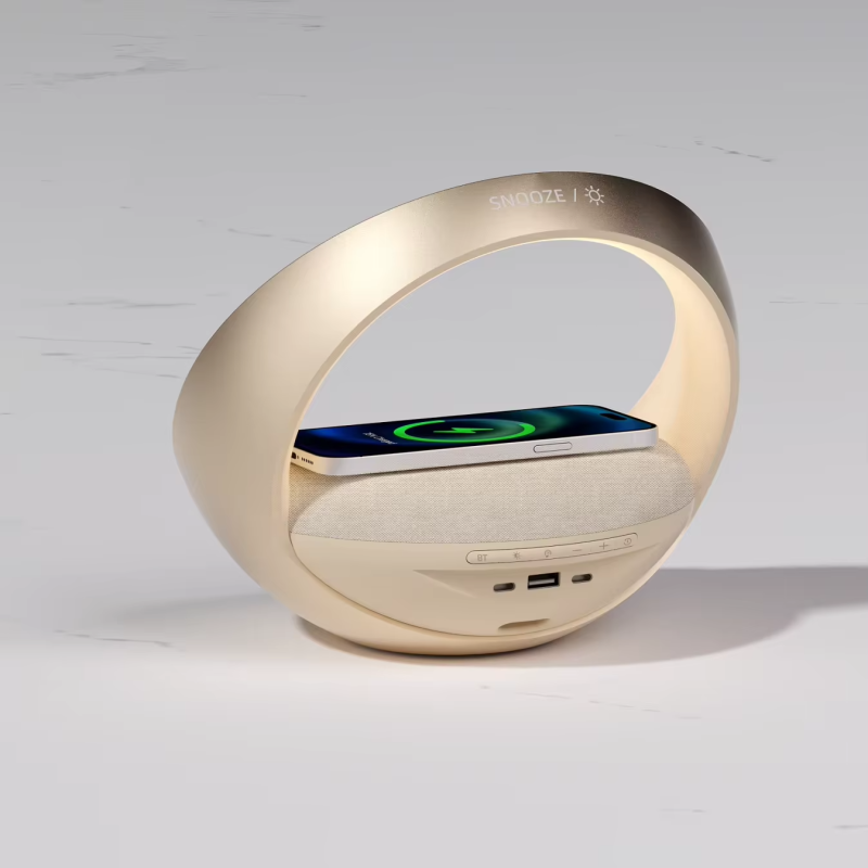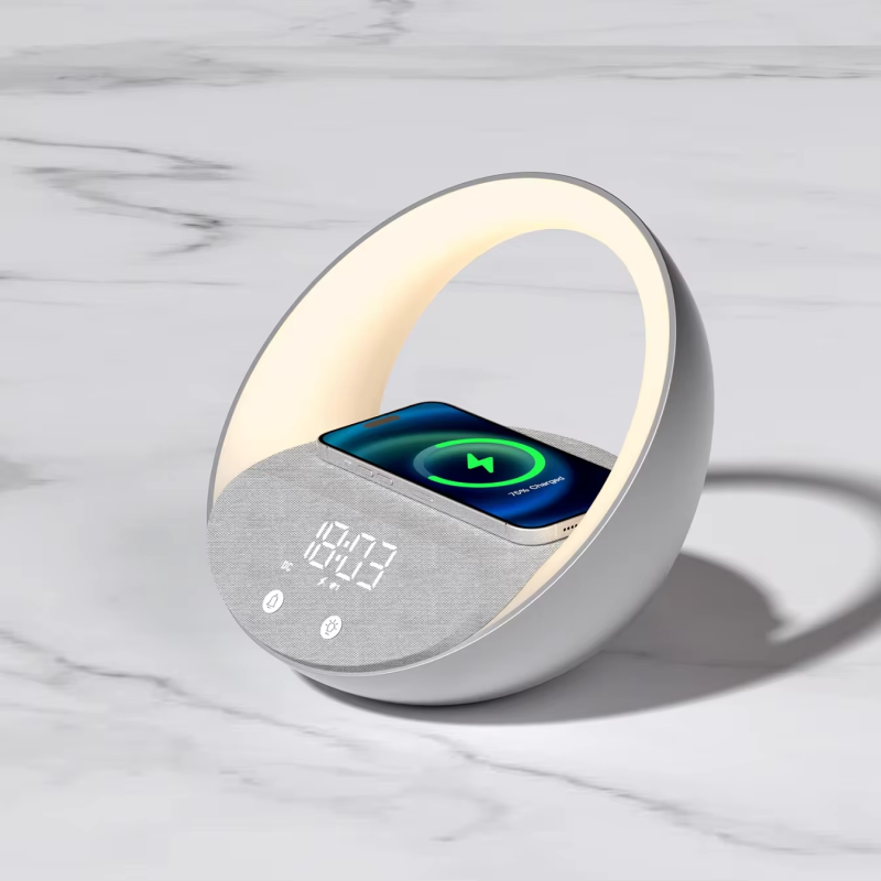 Home Tech Gadgets 2026 Cozy Atmosphere Charming 5-in 1 Night Light Wireless Speaker with Alarm Clock and Wireless Charger